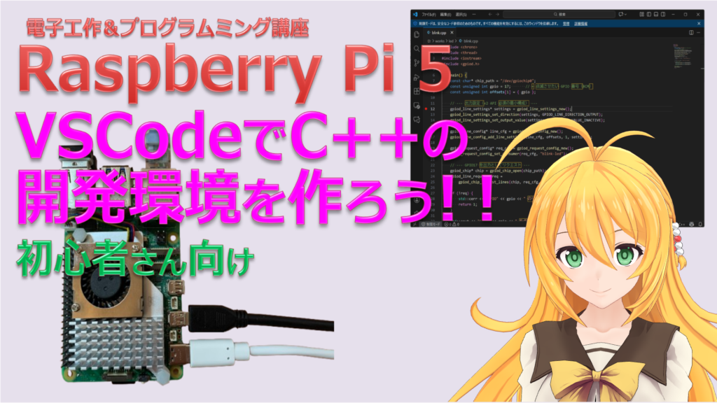 電子工作&プログラミング講座 開発環境の構築 Raspberry Pi 5で自分専用PCを作る方法 Raspberry Pi 5 8GBmicroSD 32GBOS:Raspberry Pi OS 詳細 VSCode Raspberry Pi 5 VSCodeでC++の環境構築 Raspberry Pi 5 8GBmicroSD 32GBOS:Raspberry Pi OS 詳細